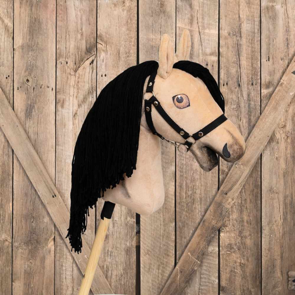 Divoký kůň Cézar je Mustang. Béžový hobby horse má béžovou / krémovou barvu, černou hřívu a má výrazný černým painting. Má světle hnědé oči. Bude divokým, no neskutečně výkonným koněm tvé stáje.